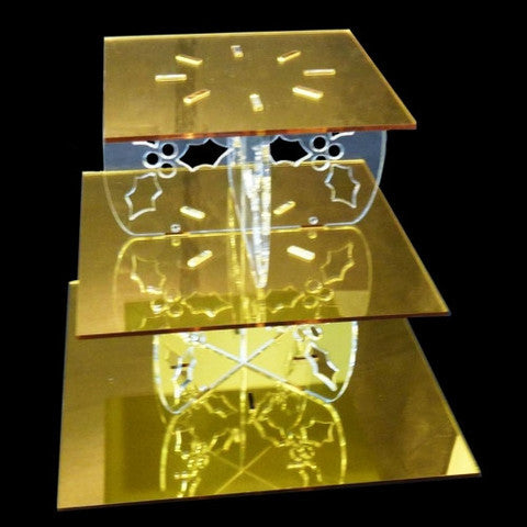 Three Tier Holly Design Square Cake Stand